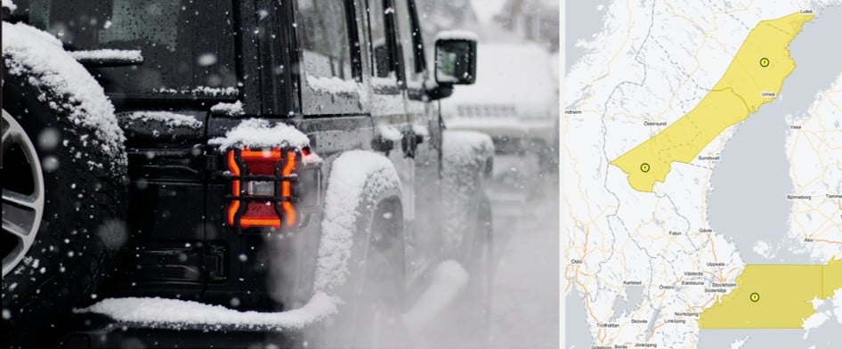 – Kör försiktigt och anpassa hastigheten till väglaget. Avsätt längre tid för din resa, uppmanar väderinstitutet.