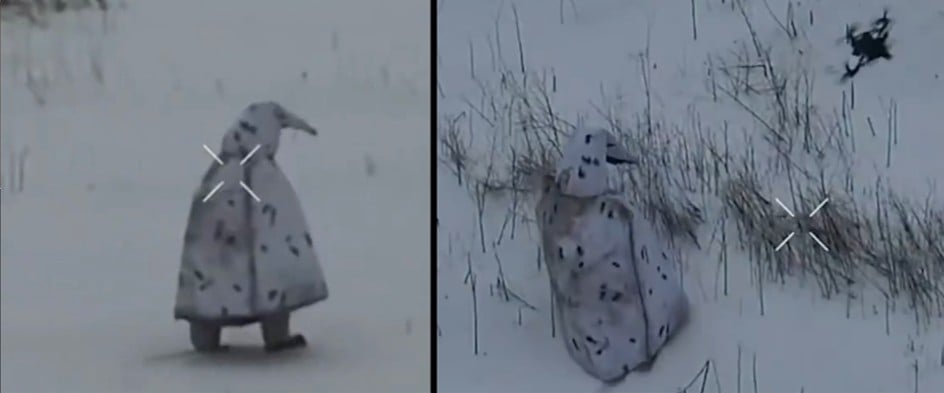 Sannolikt är dräkten utformad för att skydda soldaten från att bli upptäckt av drönare. Om det stämmer var den dock inte till mycket hjälp.